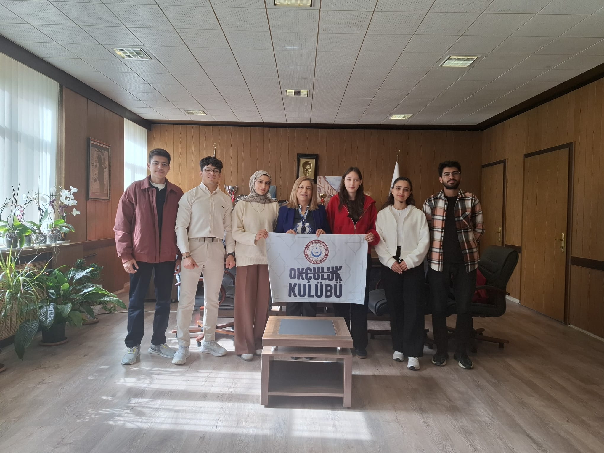 Üniversitemiz Okçuluk Kulübü öğrencileri Fakülte Dekanımız Prof. Dr. Gülay ERCİNS'i makamında ziyaret ettiler.