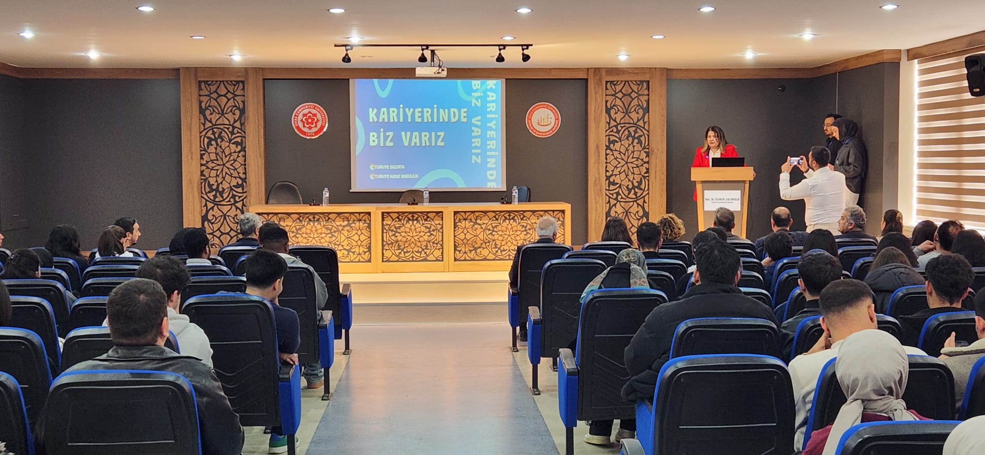Daha sonra Fakültemiz Prof. Dr. Murat Sarıkaya Konferans salonunda öğrencilerimiz ile bir araya gelerek Kariyer Programlaması hakkında bilgiler verdiler. Program soru – cevap olarak sonra erdi.