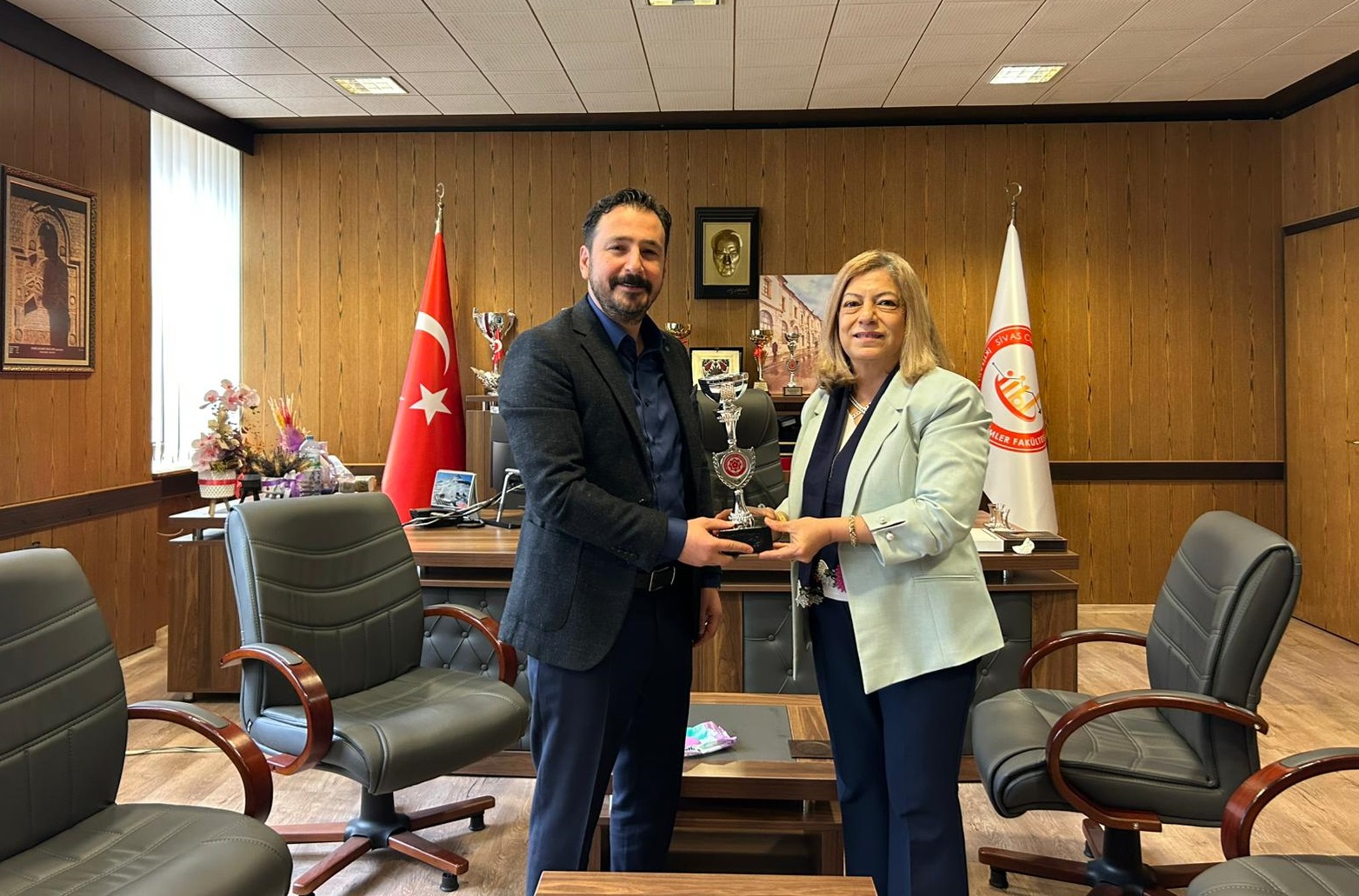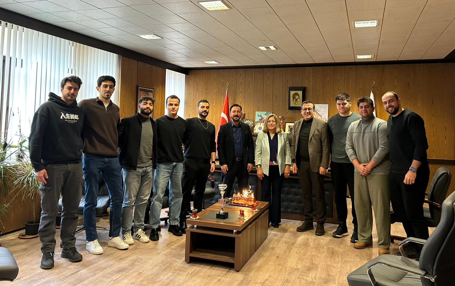 Fakülte Basketbol Takımımız 2025-2026 Yılı Fakülteler arası Basketbol Turnuvasını İkinci olarak tamamlamıştır. Takım Koçumuz Doç. Dr. Halil İbrahim Kaya hocamız ve oyuncularımız kazanılan ikincilik kupasını Fakülte Dekanımız Prof. Dr. Gülay Ercins'e teslim ettiler. Bu başarıda emeği geçen başta takım koçu Doç. Dr. Halil İbrahim Kaya hocamızı, öğrencilerimizi fakültemizi onurlandırdıkları için tebrik ederiz. Takımıza destek olmak adına salonda yerini alan öğrencilerimiz akademik-idari personellerimize teşekkür ederiz.