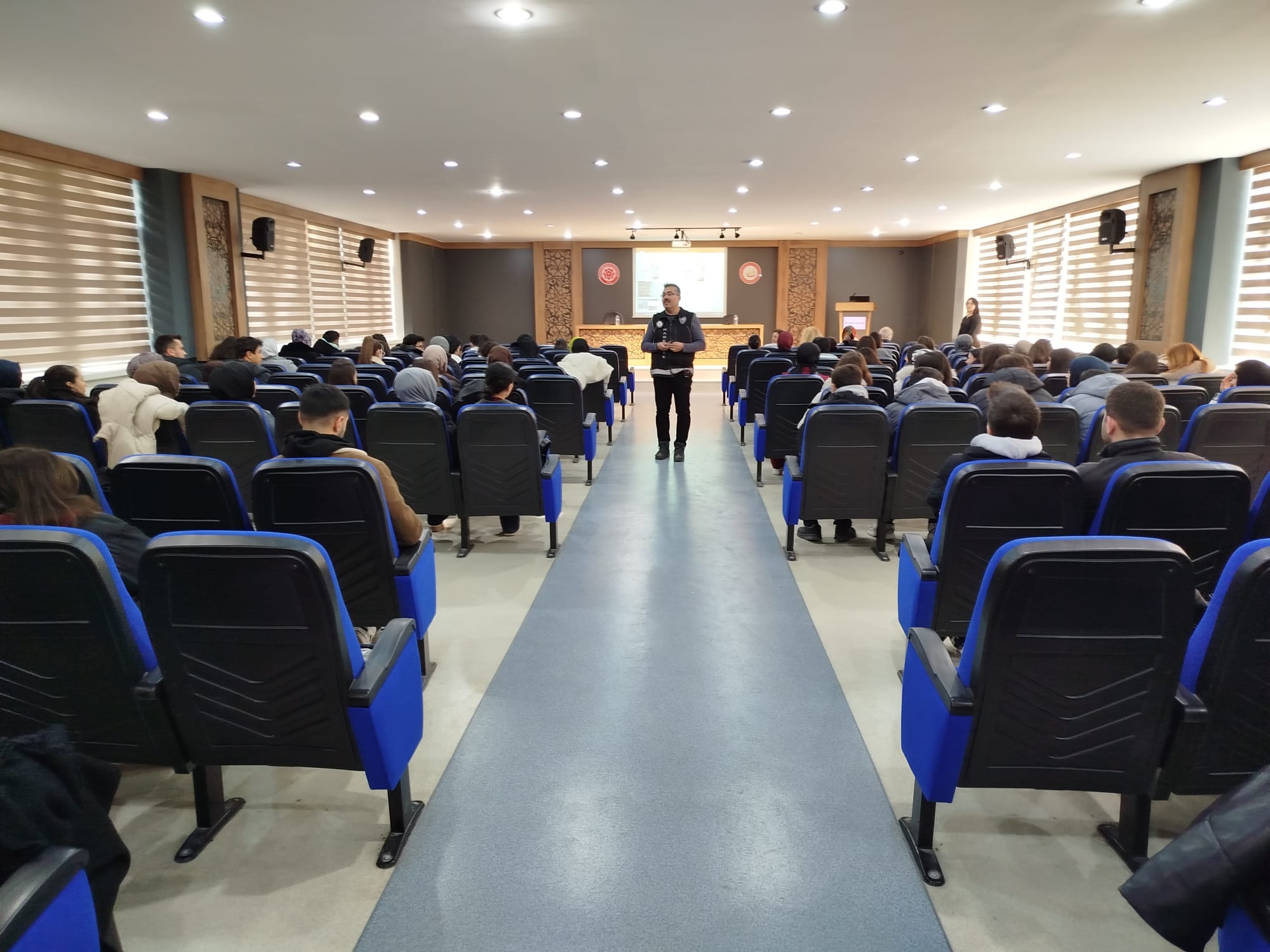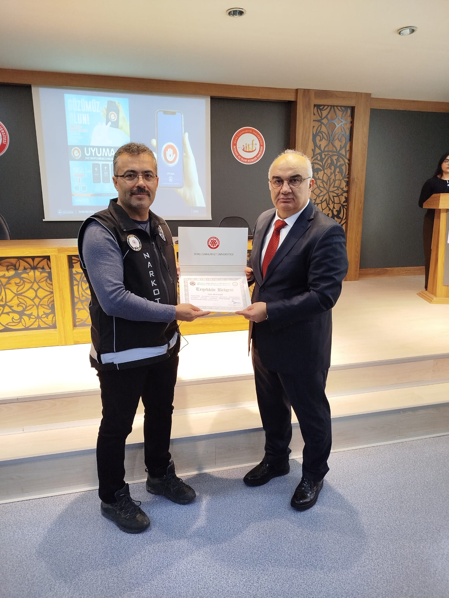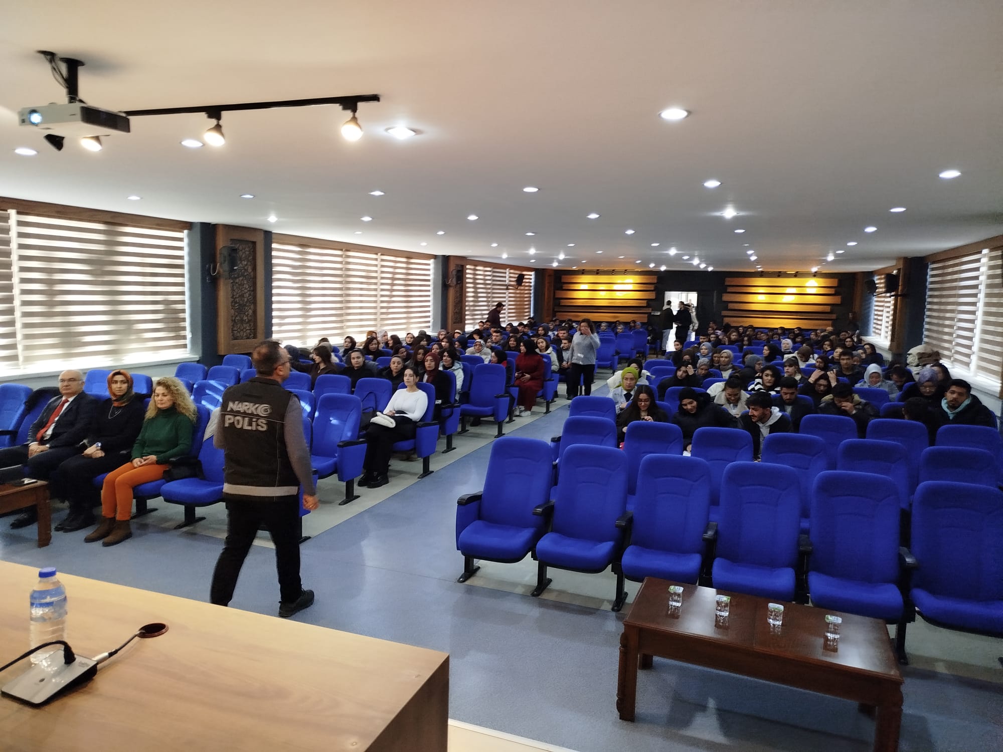 Narkotik Şube Müdürlüğü personelinin katıldığı Programa Fakülte Dekan Yardımcımız Dr. Öğr. Üyesi Raci KILAVUZ, Fakülte Öğretim Üyelerimiz, Sağlık Hizmetleri Meslek Yüksekokulu Öğretim Üyeleri ve öğrenciler katıldı.