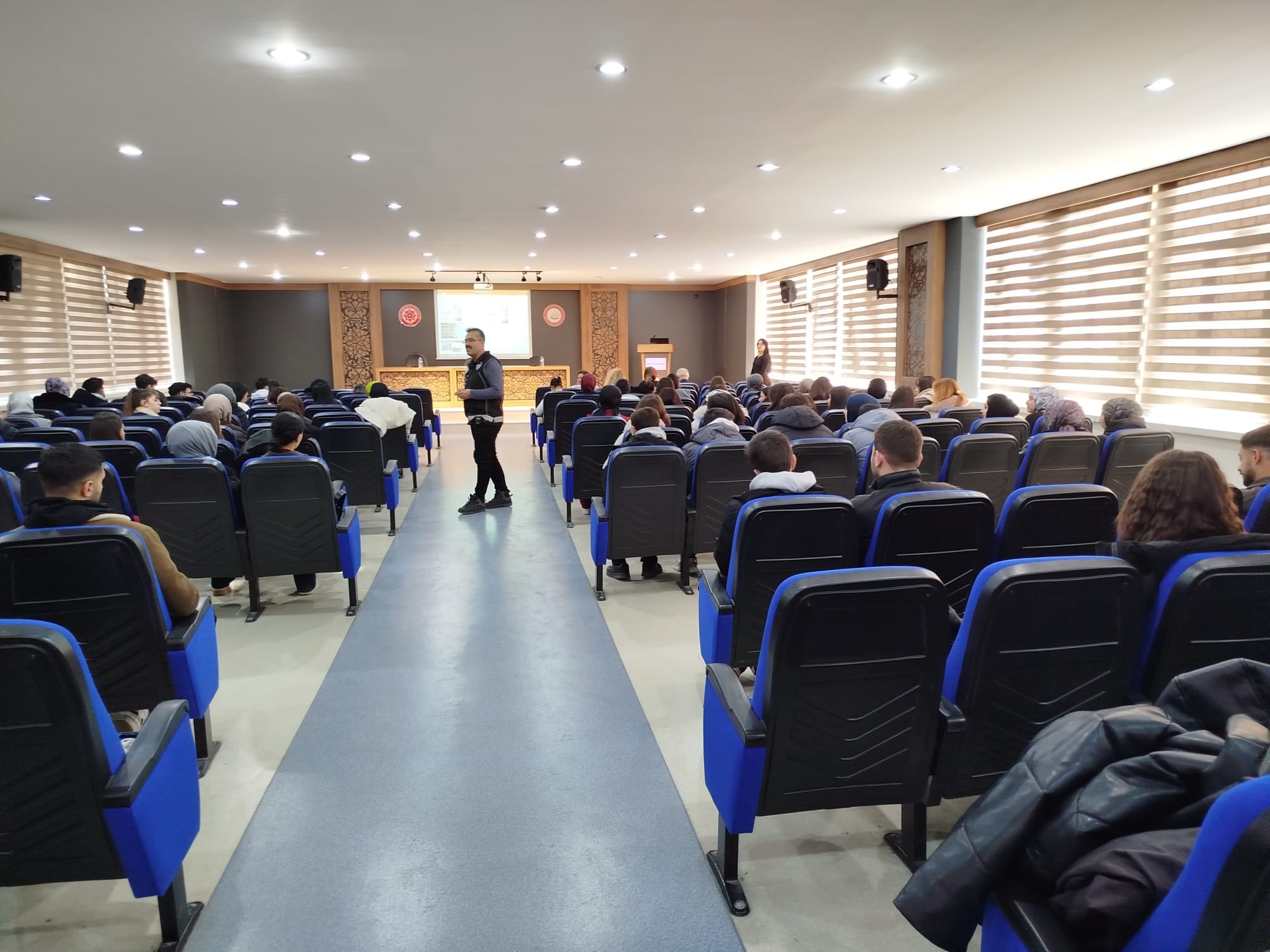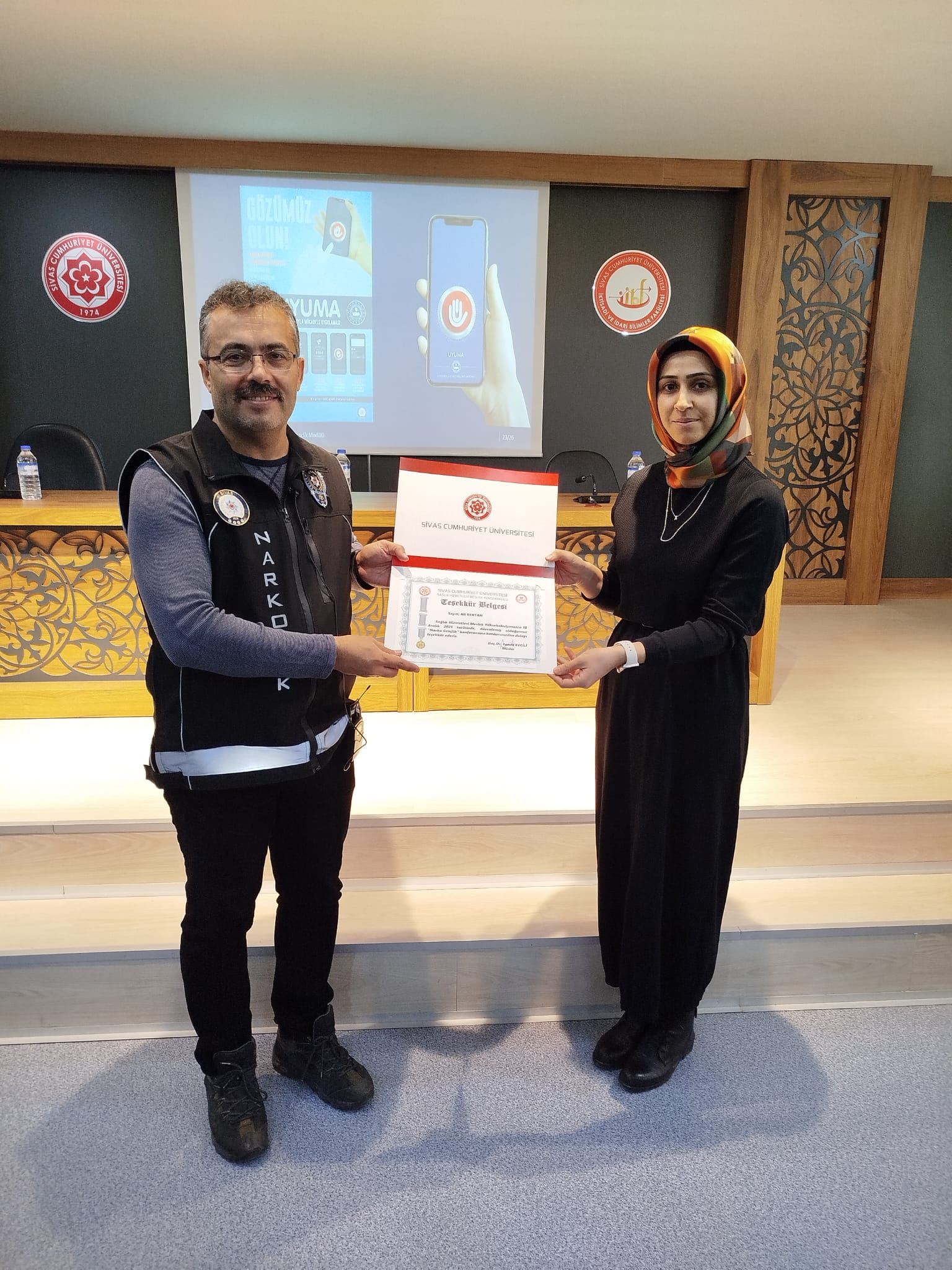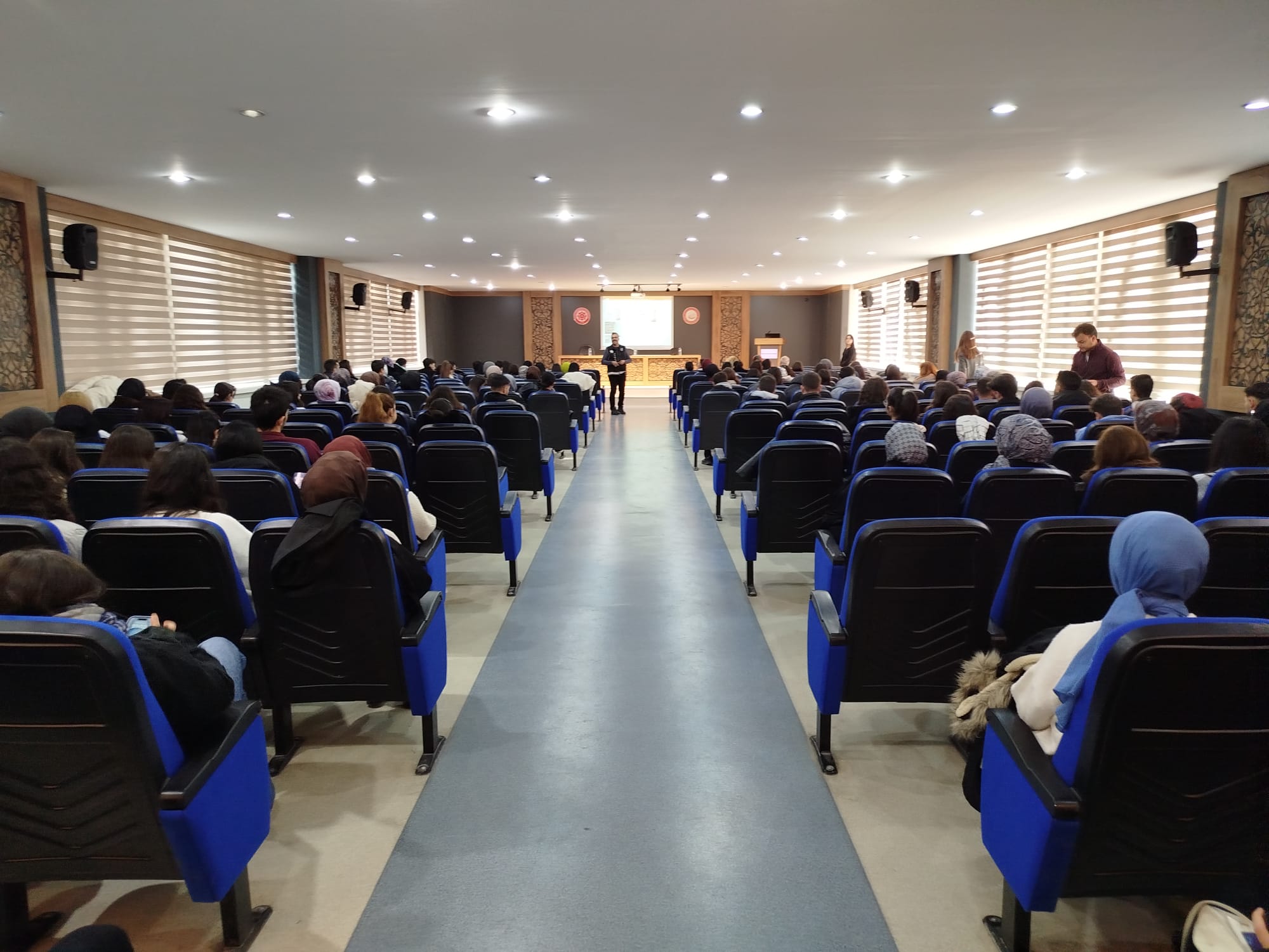 Narkotik Şube Müdürlüğü personelinin katıldığı Programa Fakülte Dekan Yardımcımız Dr. Öğr. Üyesi Raci KILAVUZ, Fakülte Öğretim Üyelerimiz, Sağlık Hizmetleri Meslek Yüksekokulu Öğretim Üyeleri ve öğrenciler katıldı.